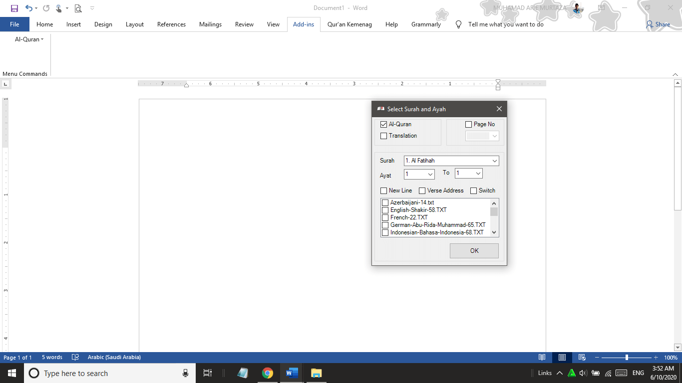 Ada beberapa fitur spesial yang terdapat pada Qur’an Kemenag in Ms Word.