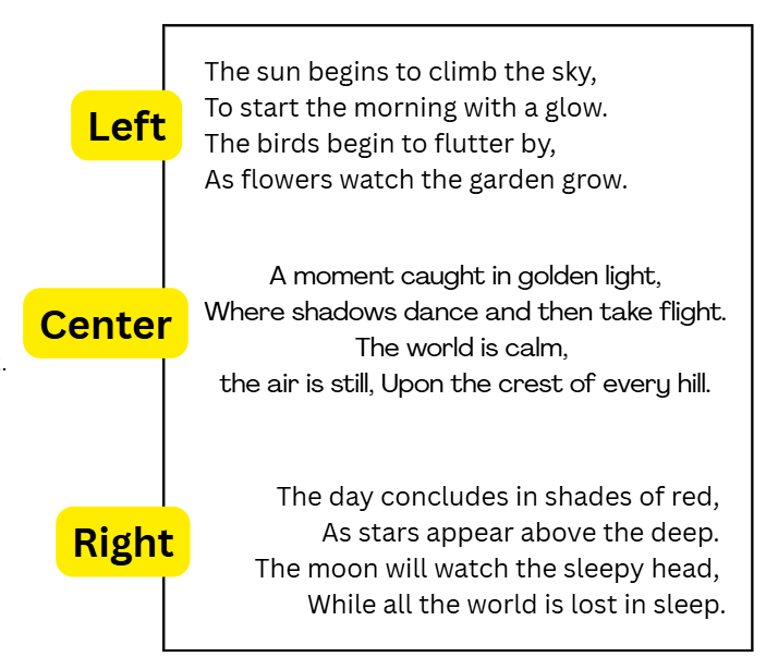 Alignment Right Center Left Justify